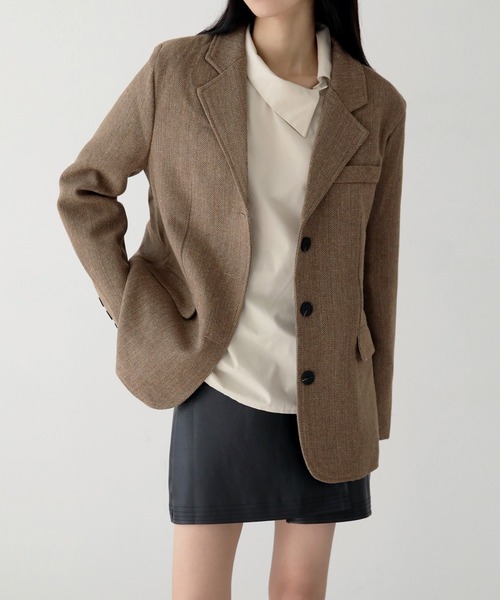 #pointoセミオーバーフィットシルエット oクラシックなジャケットデザイン oスリーボタンディテール oポケットデザイン #color o black, dark gray, cream #fabric 透け感:なし 厚み:普通 季節感:春、秋、冬 伸縮性:なし #coordinate 穏やかなヘリンボーンパターンがとても魅力的なヘリンボーンブレザージャケットです。 セミオーバーなシルエットのスタンダードなフィット感が素敵なジャケットでほのかにクラシックなムードで演出しやすいアイテム。 スリーボタンディテールでオープンクロージングスタイルができ、軽く羽織るだけでほのかなポイントを与えてくれるおすすめアウターです。 ※ご覧のモニター環境や撮影環境により実際の商品と多少色味が異なって見える場合がございます。 ご理解の程よろしくお願いいたします。 もっとお買い物を楽しむために! 商品のお気に入り登録 お気に入りの商品やサイズ・カラーまで、お気に入りの登録をしていただきますと、そのアイテムのセールの通知、ラスト1点になった時の通知や、完売しても再入荷通知を受け取ることができます! ブランドのお気に入り登録 新商品の発売や再入荷、タイムセールやクーポン発行のお知らせなど、UNE MANSIONがお届けするお得な情報を受け取ることができます! ※通知はアプリでも受け取ることができますので、是非アプリの通知設定をお願い致します! ※ご注文いただいた予約商品のお届け時期の確認は、注文履歴ページより行えます。