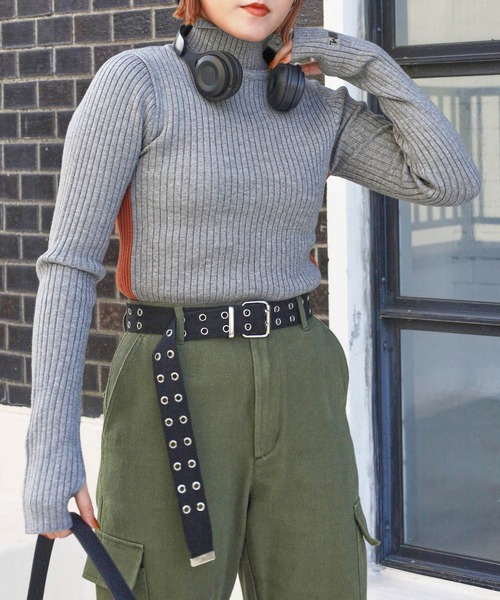 フィット感のあるすっきりとしたシルエットのハイネックトップス。サイドには配色を施し1枚で決まるデザインに仕上げました。細めのリブで細見え効果がありボディラインが綺麗に見えます。袖口はフィンガーホールで長めに設定された袖口をアウターやニットからさりげなく出して着るのもオススメです。※サンプルにて撮影をしておりますので、実際の商品とは仕様や加工・サイズ等が若干異なる場合がございます。※撮影環境により、光の当たり具合で色味が違って見える場合があります。あらかじめご了承下さい。※ご注文いただいた予約商品のお届け時期の確認は、注文履歴ページより行えます。