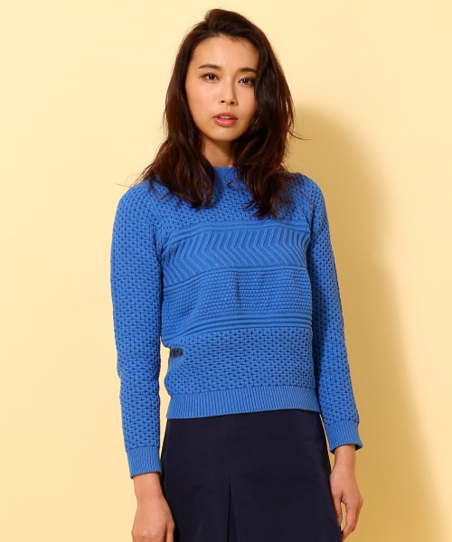 一見シンプルながら、よく見ると柄が編まれたニットは、さりげないおしゃれにぴったりのアイテム。 色々な柄をボーダー状に編んで変化をつけました。 シルエットがコンパクトなので緩めのパンツや、ミディ丈のスカートなど、旬なシルエットのボトムと相性抜群です。 <店舗へお問い合わせの際は下記品番をお伝えください。 品番:3190040002 model:H166・B82・W58・H82 着用サイズ:FREE