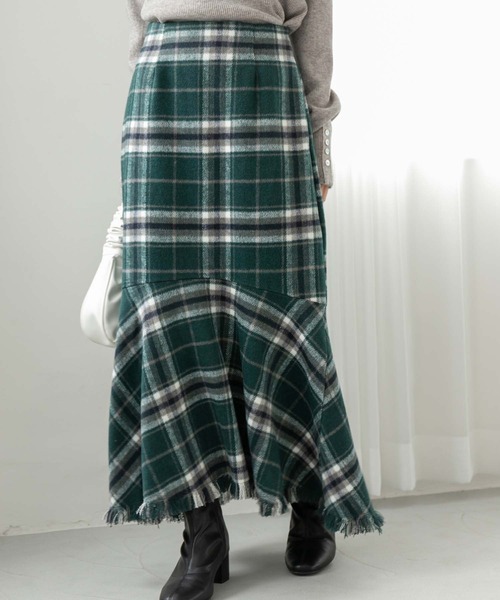 裾のフリンジがアクセントをプラスするチェックマーメイドスカート 切り替えからフレアに広がるマーメイドシルエットが女性らしい、チェック柄のスカート。裾に施されたフリンジが、アクセントをプラスしてくれます。ウエストはバックゴム仕様でフィット感が良く、トップスをインしたスタイリングもすっきりと決まります。 【低身長さん向け】U150サイズ登場! under150から着用できる ・平均身長さんと同じシルエットで着たい ・丈詰めなしで履きたい など、低身長さんのお悩みを解決! →ご購入の際は、「XS」をお選びください。 ---------------- 透け感:なし 生地の厚さ:普通 裏地:あり 伸縮性:ややあり ---------------- ※撮影時のライティング、PCやスマートフォンの環境により写真の色味が実際の商品と異なって見える場合がございます。ご了承の上お買い求め下さいませ。 ※モデル着用画像は実際の色と多少異なる場合がございますのでマネキン画像をご確認ください。 《お知らせ》 ▼商品のお気に入り登録 お気に入りアイテムの値下げ・再入荷・在庫1点などの通知を受け取ることができます。 ▼ブランドのお気に入り登録 新商品や再入荷、セール、クーポン配布などお得な情報を受け取ることができます。