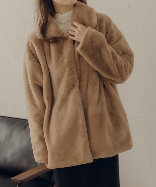 可愛らしさを纏うフェイクファーコート ふわふわとした肌触りのいい素材感。 暖かく軽い着心地なので冬の寒いに 着用して頂きやすいアウターになっています。 ゆったりとしたシルエットが可愛らしさを演出。 様々なボトムスと合わせやすい丈感にしました。 襟元はホックを付けてスタンドカラーにもできる2WAY仕様に。 雰囲気も変わりお出かけの際の防寒にもなります。 --------------------------------------- 生地の厚さ:★★★★☆ 透け感:なし 裏地:あり --------------------------------------- 【fupel by epnok / フペル バイ エプノック】 色褪せない自分らしさ。 日常にときめきを添える 昨日よりも少しだけ好きな自分に。 -オフィシャルInstagramにて最新情報や限定情報を毎日更新中!- ▼商品のお気に入り登録 完売カラーの再入荷通知や、ラスト1点、セールの通知をお知らせ致します。 ▼ブランドお気に入り登録 新商品や再入荷など、いち早くブランドの情報を受け取ることができます。 ※サイトに表示されているカラー名と実際のお届け商品に記載されているカラー名が異なる場合がございます。 ※ご注文いただいた予約商品のお届け時期の確認は、注文履歴ページより行えます。