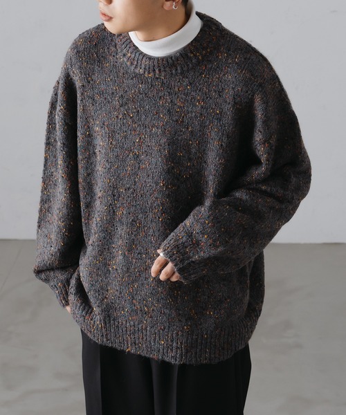 カラーネップが特徴的な可愛らしいニットが登場! <デザイン・シルエット> ・カラーネップ混合の糸を使用した生地感。 ・epnok定番のルーズなシルエット。 ・着回し力のあるクルーネック。 ・袖口も程よくルーズに。 <素材感> カラーネップが混ざった糸を使用した暖かい風合いに。 程よい厚みとしっかりした生地感で様々な季節で着用頂けます。 <商品詳細> 全体的に程よくルーズなシルエットでepnokらしさを演出。 カラーネップ混紡の特徴的な生地感がよりルーズさを感じさせる1枚。 袖口は手を包み込むような程よい広さで 手首周りの煩わしさを軽減したゆとりのあるデザインに。 クルーネックになっており1枚着としても着やすい。 中にシャツやタートルネックを合わせて 首から襟をレイヤードするスタイルもおすすめです。 カラーは着回し力の高い3色展開。 【epnokの身長別推奨サイズ】 〜165cm Sサイズ 166〜167cm S or M 168〜173cm Mサイズ 174〜175cm M or L 176cm〜 Lサイズ" 【epnok / エプノック】 日常の何気ない一瞬をも引き立てる。 「epnok」は“当たり前”に遊びを効かせた、 ベーシックなモダンスタイルを提案します。 -オフィシャルInstagramにて最新情報や限定情報を毎日更新中!- ▼商品のお気に入り登録 完売カラーの再入荷通知や、ラスト1点、セールの通知をお知らせ致します。 ▼ブランドお気に入り登録 新商品や再入荷など、いち早くブランドの情報を受け取ることができます。 ※サイトに表示されているカラー名と実際のお届け商品に記載されているカラー名が異なる場合がございます。"