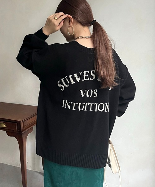 前後2WAYで着こなしができるジャガードロゴニット●ジャガードロゴがこなれた印象に見せてくれます●ゆったりしたサイズ感でオンオフ問わず着用していただけます!●ヒップ周りもカバーしてくれる丈感です●さりげない袖のボリュームが女性らしさを出してくれます!●合わせるアイテムによってキレイめカジュアルにもカジュアルにも着こなせるので着回し抜群◎ニット / ジャガードロゴ / ジャガード/ロゴニット /2WAY/大人きれいめカジュアル--------------------------------------------------------------生地の厚さ:やや厚い伸縮性:あり透け感:なし裏地:なし--------------------------------------------------------------※商品のお取り扱いに関しましては、商品に付属のアテンションカード、洗濯ネームをご覧ください。※撮影場所やお使いのモニター環境により若干お色味が異なる場合がございます。特にロケの撮影では明るく見える傾向にございます。 ※サイト上ではフリーサイズの表記ですが、商品タグにはMサイズと表記されている場合がございます。その場合、ワンサイズでのご用意となりますのでサイズミスなどではございません。詳しいサイズはサイズスペックをご確認いただきますようお願い致します。※サイト上でのカラー名とお届けした商品に記載されているカラー名が異なる場合がございますので予めご了承ください。--------------------《Information》--------------------【商品のお気に入り登録】→カートに入れる右側の【♡マーク】をクリック!完売カラーの再入荷通知やラスト1点の通知、セールの通知を受け取ることができます。【ブランドのお気に入り登録】→ブランドタグのページから【♡お気に入りショップに追加】をクリック!新商品や再入荷など、ブランドのお得な情報をいち早く受け取ることができます。是非ご登録頂き、お買い物をお楽しみください◎<返品・キャンセルについて>・着用・洗濯後の返品は致しかねます。・商品到着後、着用前に商品を確認して頂きますようお願い致します。※ご注文いただいた予約商品のお届け時期の確認は、注文履歴ページより行えます。