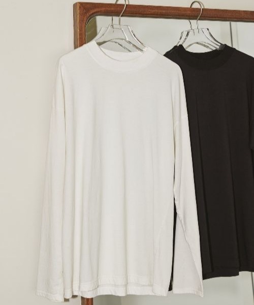 国内の上質なコットンシルクを使用したロングTシャツ。従来のコットンシルクの紡績方法とは違い、贅沢にシルクフィラメント(シルク原子)をカットしたものをコットンと混紡しています。そのため、毛羽が少なくシルクの上品な光沢感としなやかでソフトな風合いを実現した素材です。風合いと着心地、ともに抜群です。1枚ではもちろん、ニットなどのインナーにもちょうど良いカットソーです。