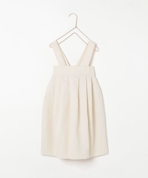■デザイン■ 表面感のあるフクレジャガード素材を使った、ハイウエストのジャンパースカート。 コロンと丸いコクーンシルエットがお茶目で可愛い1枚。 少しキレイ目なムードのあるアイテムなので、クリスマスパーティーやセレモニーシーンにもおすすめです! ショルダーストラップは長さ調整が出来るボタン付き。 ■スタイリング例■ 可愛く決めたい時は、ハイショクメローインナーやブラウスなど、ガーリーなトップスを合わせるのがおすすめ。 ちょっぴり”おめかし”ムードのあるスタイリングに仕上がります。 カジュアルに着こなしたい時は、プリントロンTやスウェットを合わせて甘辛MIXにするとおしゃれに決まります! ※チュール素材はボリュームを出すため、表地と裏地の間に使用しております。