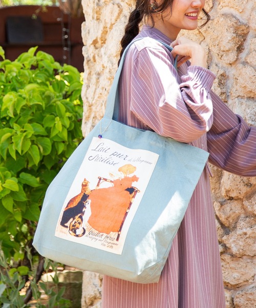 オーガニックコットンを使用したトートバッグ。 ヨーロッパのレトロなイラストをプリント。100年以上前の欧州各地で実際に使われていたカンパーニュシックなポスターデザインが目を惹きます。 持ち手が長めで肩から掛けやすく、開口部にスナップボタン付きなのも嬉しいポイント。コーデのアクセントとしても◎ ・内ポケット付き。 ・内側の色味は全カラー外側の色味と同系色です。 ・チェコ製ガラスビーズのチャーム付き。 ◆◇ 欧州航路 ◇◆ EVERYDAY A LITTLE HAPPINESS ~from the Story of Europe~ 欧州は素敵な「モノ」に溢れている かつて明治に欧州文明を迎え入れた港町横濱にて、新たな欧州航路が開かれます。 欧州には、長い歴史に裏打ちされた伝統から各地域に芽生えた生活文化まで、毎日をちょっと豊かにする素敵な「モノ」に溢れています。 これら「The Story of Europe」の魅力がいっぱい詰まった商品が貨物に積まれ、欧州航路を渡り、横濱の港に到着すれば、Mercadoのような活気あふれる空間に並ぶのです。 ※こちらの商品は1点1点職人による手作りとなります。その為、形や色合いなど若干異なる場合がございます。あらかじめご了承ください。 ※屋外での撮影画像は、光の当たり具合で色味・カラーが違って見える場合がございます。商品のカラーは、スタジオ撮影の画像をご参照ください。 Amina Collection Co.,LTD.