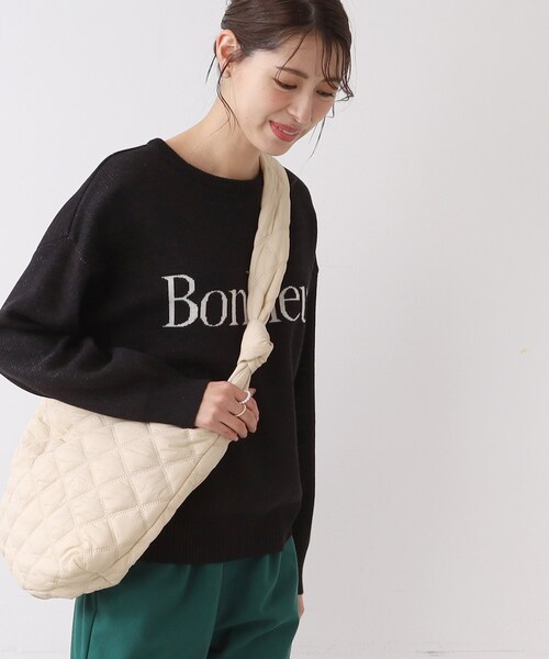 【デザイン】今年注目のロゴニット。スウェットライクな編地で、カジュアルすぎず大人っぽく着こなすことができます。ゆとりあるシルエットですが、コートインしやすいサイズ感に。一枚ではもちろん、レイヤードでのきこなしもおすすめです。絶妙な丈感でボトムを選びません。コーディネートのアクセントにおすすめです。※ボヌール(Bonheur)は、フランス語で幸運、幸福を意味します。【素材】身体のラインをひろいにくく、スウェットのようにしっかりめに編みたてたニット素材です。モデル情報:身長168cm B78 W58 H84 着用サイズ:00(FREE)店舗へのお問い合わせ商品番号:C62-15313●製品寸法:00(FREE):着丈62cm B106cm 袖丈47cm 肩幅55cm備考: