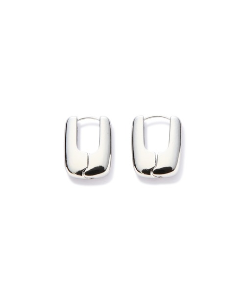 すっきりとしたスクエアフォルムのフープピアス。どんなヘアスタイルにも着こなしにも馴染みやすいデザインです。ワンタッチで装着できるタイプなので、キャッチをなくしてしまう心配がない仕様。ツヤがキレイなシルバーとゴールドの2色展開です。