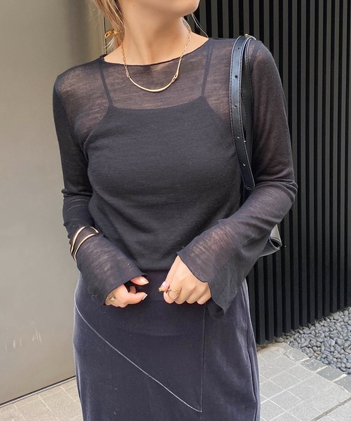 ソフトな生地感がポイントのシアーTシャツ 商品ポイント ・厚すぎなくて若干透け感もあり軽さのある1枚 ・レイヤードにも使いやすい ・柔らかくてソフトな肌当たり ・首元は程よく開いていて女性らしい抜け感がある ・フレアスリーブが手元に動きをプラスしてくれて今っぽい雰囲気に ・薄手ながらもウール入りで保温性も抜群 スタイリングポイント ・キャミワンピ、ジャンスカ、カーディガンとのレイヤードがおすすめ ・シンプルに1枚で着ても大人っぽい印象に◎ ********************** 透け感:あり 裏地:なし 伸縮性:あり 光沢感:なし ********************** ▼洗濯方法 ドライクリーニング ※撮影場所やお使いのモニター環境により若干お色味が異なる場合がございます。 特にロケの撮影では明るく見える傾向にございます。 ※商品はサンプルで撮影をしております。若干の仕様が変更になる場合がございますので予めご了承の上ご注文くださいますようお願いいたします。 ▼商品のお気に入り登録 完売カラーの再入荷通知や、ラスト1点の通知、セールの通知も受け取ることができます。 ▼ブランドのお気に入り登録 新商品や再入荷など、いち早くブランドのお得な情報を受け取ることができます。