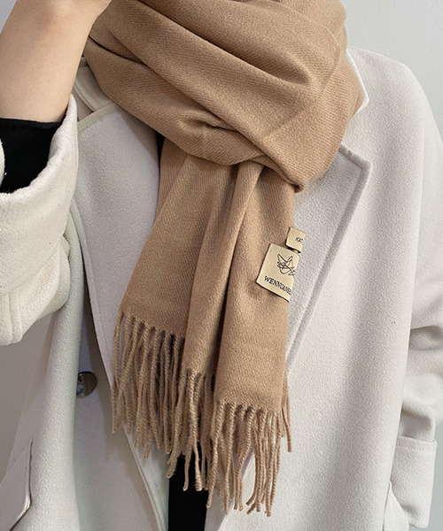 ふんわり柔らかな素材感の大判マフラー ■デザイン ・フリンジデザインと大きめのタグがアクセントに。 ・デイリーからきれいめオンスタイルまで対応する、シンプルな無地のカラーバリエーションです。 ■素材 ・柔らかなウールテイスト素材 ■スタイリング ・寒さ対策としてはもちろん、暗くなりがちな冬コーデのアクセントにも大活躍です◎