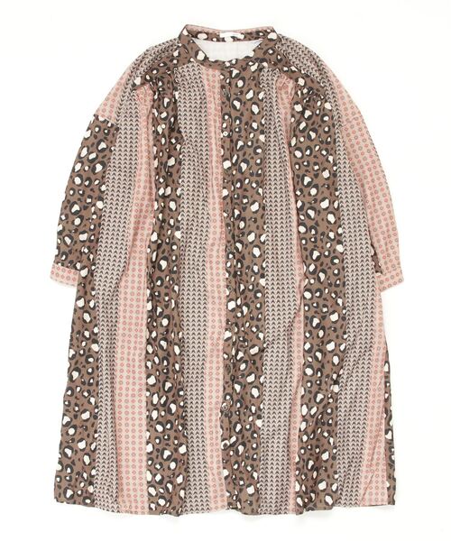 ヨークのギャザーがポイントのロングワンピースを個性的なプリント生地で仕上げました。たっぷりボリュームがあるシルエットが魅力的。着こなしやすいデザインで、コーディネイトのポイントになるアイテムです。