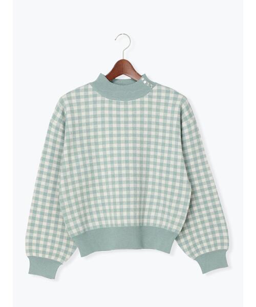 ギンガムチェック柄で上品な印象に仕上げたハイネックニット。シンプルな無地とのコンビネーションがメリハリ感をプラス。サイドのメタルボタンもさりげないポイントです。カジュアルからキレイめスタイルにと、オンオフ問わずに活躍してくれるアイテム。※商品画像は、撮影環境やお客様のご利用のPC・スマートフォンのモニター環境などにより実物と色味に差異がある場合がございます。