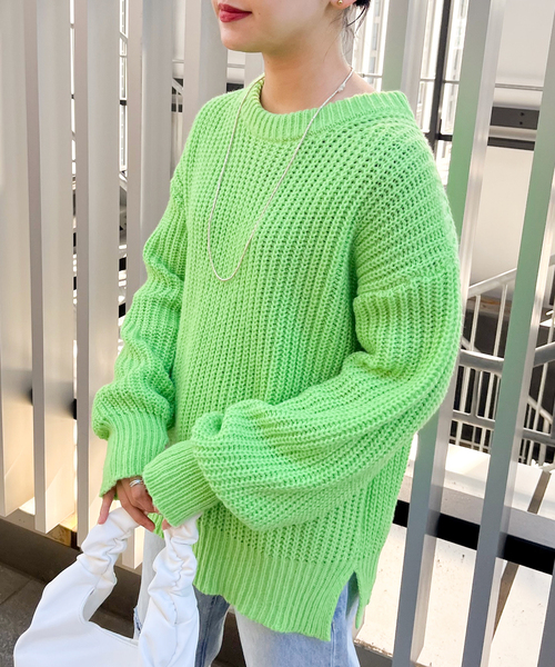 ◆軽量かつ温かいニットはこの秋冬に必見!!ふくらみがあり肌触りの心地よいニットはこれからのシーズンにおすすめしたいアイテム。ゆるっとしたサイジングなのでインナーに、ロンTや薄手のタートルネックカットソーを合わせてスタイリングすると今期らしいトレンドコーディネートの完成。襟ぐりは開きすぎず詰まりすぎずのちょうどいい開きで、一枚でもレイヤードしてもサマになるネックライン仕上がりに。オーバーサイズ見えに仕上げながらも着丈をややコンパクトにし、全体のバランスを調整した一着は“旬”のワイドパンツはもちろん、どんなボトムスとも相性抜群なデザインとなっています。**********************透け感:若干あり裏地:なし伸縮性:なし光沢感:なし生地の厚さ:普通**********************【スタッフ着用コメント】《スタッフ staff.A》身長:155cm/普段サイズ:S~M/着用サイズ:フリーサイズ感:全体的にゆったりとしたビッグシルエットでも大きすぎない。肩周りと袖がゆったりしてる分、身幅がスッキリとしたデザイン。素材感:ふっくらとした表面感で、柔らかい素材です◎着心地:軽くて温かく毎日でも着たくなる着心地。**********************※取り扱いについては、商品についている品質表示でご確認ください。※店頭・外での撮影画像は、光の当たり具合で色味が違って見える場合があります。商品の色味は、スタジオ撮影の画像をご参照ください。本体:ドライクリーニング