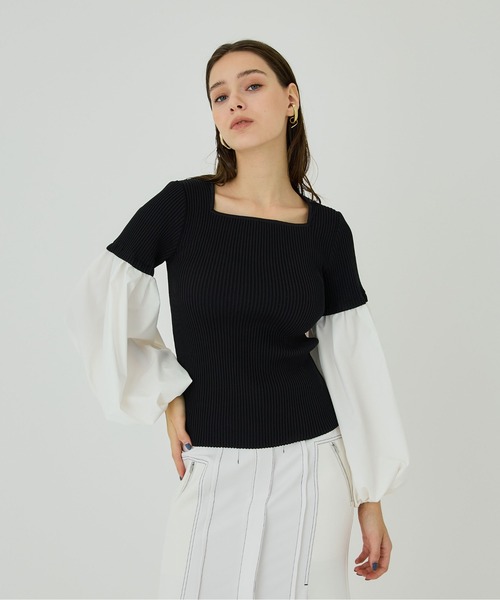 《UNITED TOKYO 2022AW ITEM》 〈素材〉・透け感/なし ・裏地/あり ・伸縮性/なし リブ編みのニット生地で伸びがよく、着心地も抜群。 袖の布帛の部分は、マットの質感のタフタ生地です。 ふんわり程よくボリューム感を出してくれます。 〈デザイン〉 コンパクトなシルエットのニットに、トレンドのふんわりとしたパフ袖で、華やかな女性らしさが際立つ一枚です。 開き過ぎないスクエアのネックラインで、体に程よくフィットするサイズ感で作りました。 ネックがすっきりしてる分、袖にボリュームを持たせています。 中にハイネックのカラーインナーと合わせて着ると、モードの印象を演出してくれます。 -------------------------------------------- お手入れ方法/ドライクリーニング推奨 -------------------------------------------- 【お買い物をよりお楽しみいただく為に】 ▼商品のお気に入り登録をおすすめします。 ♡をクリックしてください。 完売カラーの再入荷や、ラスト1点の通知、 セールの際の通知を受ける事ができます。 ブランドのお気に入り登録もご一緒にお願い致します。