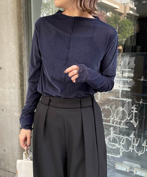 トレンドライクなベロア素材のロンT 商品ポイント ・抜け感漂う軽く透け感のある生地 ・柔らかく肌触りも◎ ・起毛感があり薄手でも暖かく着られる ・重ね着しても重たく見えず、トレンド感がプラスできる スタイリングポイント ・1枚ですっきりシンプルに ・キャミワンピやジャンスカのインナーに ・ジャケットやカーディガンのインナーにも最適 ********************** 透け感:なし 裏地:なし 伸縮性:あり 光沢感:なし ********************** ▼洗濯方法 液温は30℃を限度とし、洗濯機で弱い洗濯ができる ※撮影場所やお使いのモニター環境により若干お色味が異なる場合がございます。 特にロケの撮影では明るく見える傾向にございます。 ※商品はサンプルで撮影をしております。若干の仕様が変更になる場合がございますので予めご了承の上ご注文くださいますようお願いいたします。 ▼商品のお気に入り登録 完売カラーの再入荷通知や、ラスト1点の通知、セールの通知も受け取ることができます。 ▼ブランドのお気に入り登録 新商品や再入荷など、いち早くブランドのお得な情報を受け取ることができます。