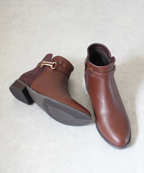 今年も大人気のシンプルなショートブーツです。 ラウンドトゥの木型を使用したベルト付きのショートブーツです。 ビット付きのベルトは取り外しが可能です。 本体の素材には撥水加工を施しており、縫製部分にも防水加工を施しております。 スエード部分も撥水加工を施しております。 雨の日でも雪の日でも活躍出来る晴雨兼用ブーツです。 ヒールは程よい高さの3cmヒール。 本物の本スタックヒールを採用しており、高級感にあふれています。 ヒールの接地面が広く長時間歩いても疲れません。 ウラ材は足当たりの良いウレタン素材を採用しています。 また、パイロン素材のカップインソールが入っており、 すごく楽ちんですごく快適です。 カップインソールの下には高反発クッションが入っており、 感動の履き心地です。 スニーカーの様な履き心地です。 底は屈曲性が良く軽量な材質を採用しています。 シンプルなデザインですので、どんなシーンでも活躍出来るブーツです。 オンでもオフでも活躍出来る柔らかブーツです。 秋から冬、そして春まで活躍出来ます。 当店の商品ならではの幸せな履き心地を是非お試しくださいませ。