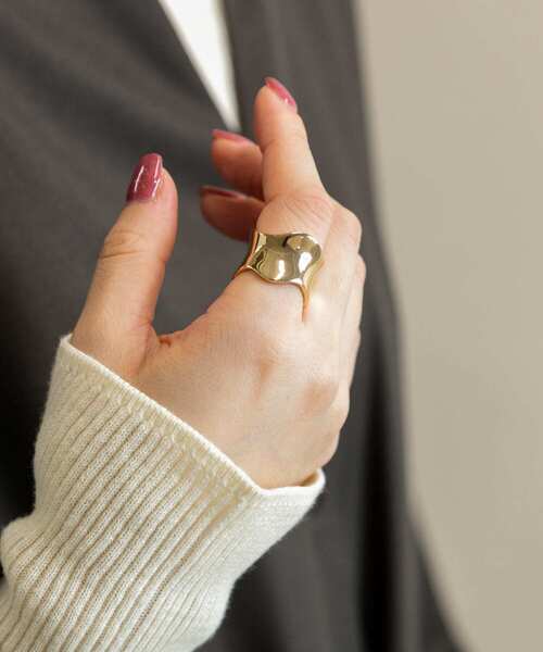 【指にフィットするウェーブデザイン】ワイドシルエットに仕立てたボリュームのあるリング。艶のあるメタル素材がほっこりとしたニットなどの秋冬スタイルに程よい冷たさをプラスしてくれます。シーズンを問わず、多彩なコーディネートにマッチしてくれる万能な1点です。※メッキ製品は変色してしまいがちです。こまめなお手入れで防止してください。アレルギー体質の方や体調が低下している方など、かぶれることがありますので十分にご注意ください。※アクセサリーは壊れやすいものです。取扱いにご注意ください。※その他お取り扱いに関しましては、商品に付属のアテンションタグをご覧ください。サイズ : 13号※商品画像は、光の当たり具合やパソコンなどの閲覧環境により、実際の色味と異なって見える場合がございます。予めご了承ください。※商品の色味の目安は、商品単体の画像をご参照ください。▼お気に入り登録のおすすめ▼お気に入り登録商品は、マイページにて現在の価格情報や在庫状況の確認が可能です。お買い物リストの管理に是非ご利用下さい。