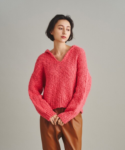 獣毛混の素材でジャガード編みをした、優しい雰囲気のニットトップス。セーラーカラー風のデザインとリラックスムード漂うシルエットで。今の気分たっぷりに仕上げました。カラーボトムと相性が良いキナリと、発色が綺麗なピンク&グリーンの3色をご用意。パンツにもスカートにも着合わせやすい、一枚あるとコーディネートの幅が広がるアイテムです。※こちらの商品はサンプル品を撮影しております。実際の商品と色、仕様、加工、サイズが若干異なる場合がございます。予めご了承下さいませ。