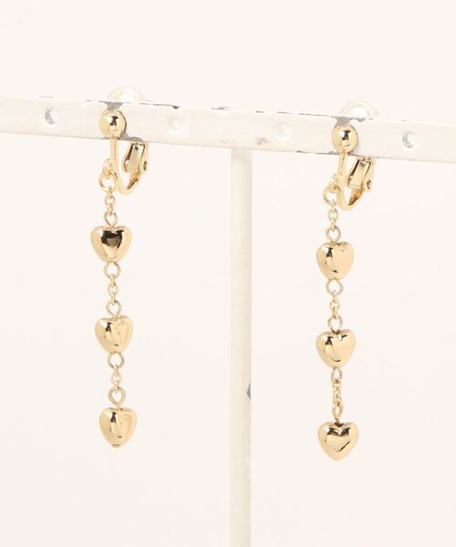 ハートモチーフを連ねたロングタイプのイヤリング。 揺れることで周りの視線をキャッチ。縦ラインを強調することで小顔効果も期待できます。 ネジバネ金具にはカバー付きなので痛くなりにくいのも嬉しいポイント。 メタルモチーフでどんなコーディネートにも合わせやすいのも魅力です。 ※商品画像は、撮影環境やお客様のご利用のPC・スマートフォンのモニター環境などにより実物と色味に差異がある場合がございます。 ★《お気に入り登録》でお得な情報をGET★ ① 商品ページ内のハートマークをクリック! ② 以下通知が受け取れます! 「再入荷」「ラスト1点」「特別セール」etc.. \ブランド、ショップのお気に入りも是非!/