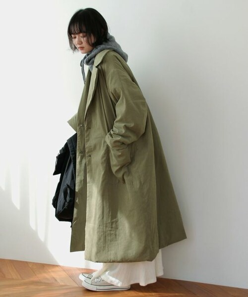 軽やかな着心地が魅力のパディングコート。 カジュアルになり過ぎないテーラードシルエットが落ち着いた雰囲気を演出します。 デイリー使いはもちろん、きちんと感を出したい日にも、幅広いスタイリングに活躍する1枚です。 中綿入りで保温性がありながらも、軽いのでストレスフリーな着心地が叶います。 しっかりと着丈があるので様々なボトムスと好相性◎ すっきりとした衿ぐりでマフラーやトレンドのバラクラバとも相性良く着ていただけます。 肩落ちのデザインでこなれ感をプラス。 大きめのポケットで実用性がありながらもコーディネートのポイントに。 さらりとした肌触りの生地。 軽く柔らかいのでストレスフリーな着心地が叶います。