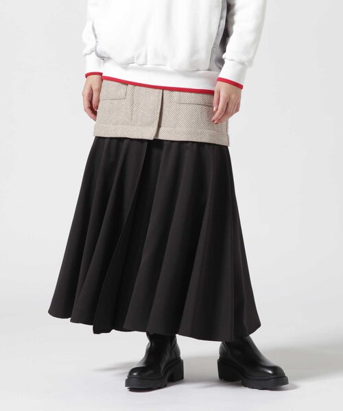 ヘリンボーンのミニスカートとナイロンが切替になっているスカート。ふわっとしたAラインのスカートですが、ナイロン部分は切り離し可能でヘリンボーン柄のミニスカートにもなります。ヘリンボーンスカート部分は、ラップ式になっており、フロントに2つジップがあるのでタイトシルエットにも出来ます◎Risley/リズレー国内やヨーロッパでのバイイングを豊富に経験したクリエイター達によるこだわりのある視点で、もっとこうしたい、ああしたいという思いが膨らみ、それらを形にしていく事でリアルニーズに応えた商品を追求し提案。ありそうでなかった洗練されたリアルクローズブランド。