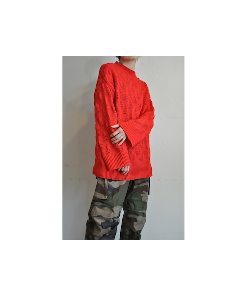 "multiple cotton series" Tシャツなどに使われる細い糸をオリジナルで束ね合わせ、独自の解釈で編み上げたニット。 サボテンをモチーフにして編地を完成させました。 コットン素材を使用し、シーズンレスで着ることができるニット。 袖、裾のリブはあえて太めでゆったり着れるような作りで、サイズフリーで男性でも着用できます。 全4色展開。