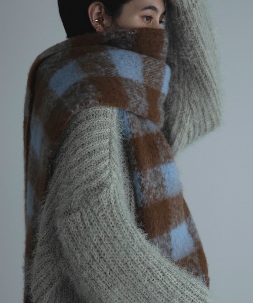 モノトーンスタイルを落ち着いたまま控えめなポイントを与えてくれるチョコミントカラーのチェックマフラー。長くてとても軽い素材で圧縮感なくふわふわとしています。巻くととてもボリューム感が出て埋もれてしまうかも。たたんでちょっとバッグに入れる、ような大きさではないのですが(笑)手に取ってもとても軽いので肩にかけておいてもストレスなく過ごせますよ!逆に身軽に過ごしたい日、ニットなど重いトップスではなくカットソーやシャツ、ブラウスなどの薄手の素材のトップスを着て肩から羽織ったりしたスタイルも。くび元を温めることで暖かく過ごせますよ。秋ならライトアウター感覚で。冬は本来のマフラーという役割に戻ってコートと合わせてお使いください。[着用時期]9~3月(約15℃以下)[透け感]なし[生地の厚み]中肉(重ねると厚手)[ストレッチ]なし[生地のやわらかさ]やわらかい[生地の特徴]軽い起毛素材[落ち感]なし[着用ジワ]ならない[身長]全ての方に※感じ方には個人差がございますので気になる部分がありましたらお気軽にお問い合わせください
