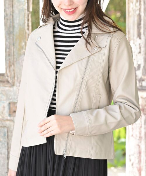 トレンドに左右されない定番ライダースいつまでも愛され続ける定番デザインのライダースジャケット。女性にも喜んで着ていただけるコンパクトなサイズ感に仕立てました。柔らかで着心地の良いフェイクレザーを使用。着るたびになじんでくれる愛着の沸く1枚です。カジュアルからきれいめまでお使いいただけてコーデをきりりと引き締めます。凛とした雰囲気も醸し出す王道の垢抜けアウター。トレンドに左右されないからワードローブにあると便利なアイテムです♪※再入荷の場合、生産時期が異なるため色・素材・サイズ・デザイン等多少異なる場合がございますので予めご了承ください。裏地あり伸縮性なし中厚前開きファスナー袖口ボタンありサイドポケットあり合成皮革(ご利用の際に固いものとこすれたりすると表面のコーティングが剥がれ落ちることもございます。また永久的な加工ではございませんので年月の経過とともに剥離していく傾向がございますこと予めご了承ください)洗濯:ドライクリーニング▼お気に入り登録でお得がいっぱい▼~商品をお気に入り登録~再入荷・ラスト1点などの通知を受け取ることができます!~ブランドをお気に入り登録~《rps》の新商品・再入荷情報をいち早くお届け!