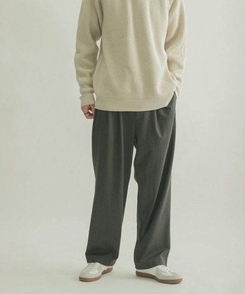旬な見た目が叶いながらもディテールは凝らず、様々なオフスタイルに寄り添ってくれる一本が登場。 秋冬の冷え込む季節に重宝するしっかりとしたTR素材を使用する事でさらりと美しい落ち、ドレープ感が演出され楽な穿き心地に。 計算されたワイドシルエットがだらしなくなく着られ、ウエストの2タックがトップスをインしても美しく魅せてくれます。 大人な雰囲気が漂うシックな二色で展開。 【FORK&SPOON(フォークアンドスプーン)】 DOORSのプライベートレーベル。その名前のとおり「毎日食事を摂るように、毎日大切に着てほしい」という思いが込められています。毎日着たくなる様な心地のよいベーシックスタイルは、世代を超えてお楽しみいただけます。 ※商品画像は、光の当たり具合やパソコンなどの閲覧環境により、実際の色味と異なって見える場合がございます。予めご了承ください。 ※商品の色味の目安は、商品単体の画像をご参照ください。 ▼お気に入り登録のおすすめ▼ お気に入り登録商品は、マイページにて現在の価格情報や在庫状況の確認が可能です。 お買い物リストの管理に是非ご利用下さい。素材感 透け感:なし 伸縮性:なし 裏地:なし 光沢:なし ポケット:あり 45