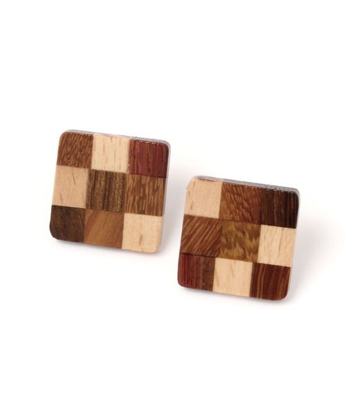 ーーー工芸品のような格子柄が素敵なピアス。木材はお箸を生産する過程で発生する廃材をアップサイクルして仕様しています。可愛いだけでなく、自然にも配慮した商品です。ハンドメイドならではの風合いをお楽しみください。ーーー