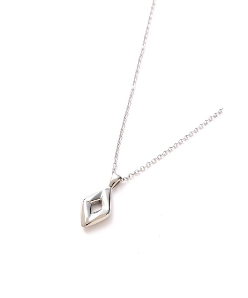 <DESIGN> ダイヤモチーフのオリジナルステンレスネックレス。 シンプルな中にもねじれを加えたような独特の造形がオリジナリティのあるデザインです。 シンプルなコーディネイトにも合わせていただきやすいネックレスです。 <TEXTILE> ステンレス製。 シルバーアクセサリーよりもリーズナブルでありながら、いぶしの表情など、見た目のクオリティはシルバーアクセサリーに引けを取らない仕上がりです。 もちろんステンレスですので、金属アレルギーを起こしにくく、非常に硬いので傷がつきにくい、錆びにくいという特徴がありお手入れが簡単なこともポイントです。