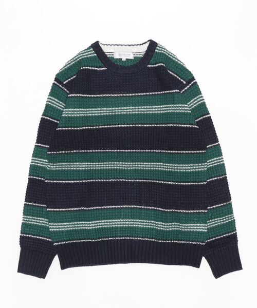 ワッフル編みがおしゃれなボーダー柄ニット。 スタイリングしやすいクルーネックデザイン。 カジュアルにもキレイ目にもマッチします。 ・コーデに華を添えるボーダー柄 ・大人カジュアルコーデにもマスト ・ユニセックスで使えるデザイン
