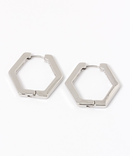 キャッチいらずのワンタッチピアス。 ヘキサゴンモチーフのシンプルなデザインで、どんなスタイルにも合わせやすいアイテムです。