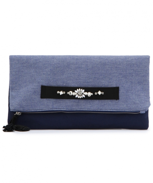 ビジューコンビクラッチバック☆ コーディネートのポイントになる、ビジュー付きクラッチバック。 細かいストライプ模様とタッセルがついている事によって、上品になり過ぎず普段使いに◎ 手を通して持つ事が出来、内ポケットもついているので機能性にも優れたクラッチバックはとっても実用的! 様々なスタイルに合わせやすいオフホワイトとネイビーの二色展開です。 ※着用、お取り扱いの際は商品についておりますアテンションタグ、洗濯ネームを必ずご確認ください。 店舗にお問い合わせの際は、全国のAnother Edition店舗まで 下記の品名/品番をお申し付け下さい。 品名:AEFC BJ CMB CLT 品番:56321991906