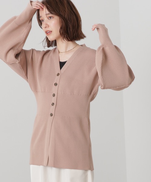 袖やウエスト部分のリブ編みで変化をつけたフォルムカーディガン。余裕のあるシルエットで羽織り心地よく、袖口のカフスを長めにとったリブ編みとボリュームスリーブがアクセント。フロントボタンを途中までつけ、裾をアウトしたまま羽織れるデザイン性のある一枚。パンツスタイルにもマーメイドスカートにも相性良く、雰囲気の違うコーディネートが楽しめます。