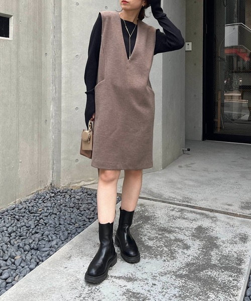 人気のジャンスカがミニ丈になって登場! 商品ポイント ・シンプルで無駄のないデザイン ・深Vネックですっきり見え ・短すぎないひざ上丈で大人の女性も着やすい ・インナーを変えてロングシーズン着られる スタイリングポイント ・リブニットやシアー系のトップスをインナーに ・オーバーサイズのカーディガンを羽織って抜け感をプラスして ・ロングブーツ合わせのトレンドライクなスタイリングがおすすめ ********************** 透け感:なし 裏地:なし 伸縮性:なし 光沢感:なし ********************** ▼洗濯方法 ドライクリーニング ※撮影場所やお使いのモニター環境により若干お色味が異なる場合がございます。 特にロケの撮影では明るく見える傾向にございます。 ※商品はサンプルで撮影をしております。若干の仕様が変更になる場合がございますので予めご了承の上ご注文くださいますようお願いいたします。 ▼商品のお気に入り登録 完売カラーの再入荷通知や、ラスト1点の通知、セールの通知も受け取ることができます。 ▼ブランドのお気に入り登録 新商品や再入荷など、いち早くブランドのお得な情報を受け取ることができます。