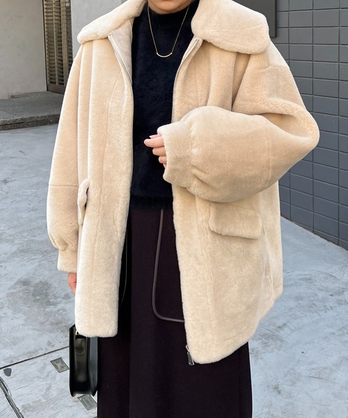 Lui's FEMME(ルイス ファム)オリジナル22AWコレクションより、フェイクオーバージャケットの登場です! 【素材】 肌触りは滑らかで柔らかく、リアルファーに劣らない贅沢な素材感のフェイクファーを使用。いつのもコーディネートを格上げしてくれます。 【デザイン】 ボリューム感のあるシルエットは、バランスの取りやすい着丈とやや裾周りを詰めたこだわりのシルエットでスッキリとした印象に仕上げました。ややボリュームのある襟が顔周りを華やかに演出しつつ、抜け感を感じる絶妙なサイジング。デイリーユースにピッタリ。 【コーディネート】 コーデを選ばずどんなテイストのスタイリングにもマッチ!カットソーやデニムに合わせれば、大人カジュアルな休日スタイルに。ブラウスやタイトスカート等のキレイめスタイルに合わせれば、デートやお呼ばれのシーンにもピッタリです◎ 【ブランド】 Lui's FEMME(ルイス ファム) 凛とした芯のある女性。 自立した、女性のワードローブをイメージ。洗練されたかっこよさの中に、女性らしさ・かわいさ・セクシーさを持つ。自分自身のスタイル(自分らしさ・個性・生き方・感覚...)を表現できるひとつの手段としての服。肩肘張らない、心地よいリラックス感のあるスタイルを上質な素材、優雅なシルエットで提案。 ********************** 透け感:なし 裏地:あり 伸縮性:なし 光沢感:なし 生地の厚さ:厚手 ********************** 【注意事項】 ※画像の商品はサンプルです。実際の商品と色味、仕様、加工、サイズ、素材等が若干異なる場合がございます。 ※工場の生産の都合上、納期が変更になる場合がございます。発送日の前後については予めご了承ください。 ※入荷状況により、お客様への発送が店頭販売より遅れる場合もございます。 ※商品を使用前に、タグ等に記載されている「取り扱い上の注意書き」、「洗濯表示」を必ずご確認ください。 ※商品画像は、光の当たり具合やパソコンなどの閲覧環境により、実際の色味と異なって見える場合がございます。予めご了承ください。 ■商品のお気に入り登録(ハートマーク) 完売カラーの再入荷、ラスト1点の通知、セールの際の通知を受け取れます。 ■ブランドのお気に入り登録 新商品の入荷など、いち早くブランドのお得な情報を受け取れます。 是非ご利用ください。