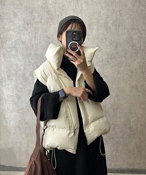 あったかふわふわなベスト。パンツ、スカート、ワンピースの上から色んなスタイリングに合わせられます!着用カラー:アイボリー