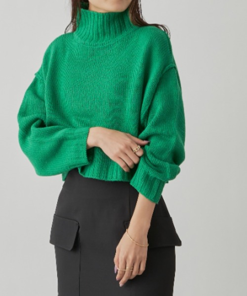 【バルキークロップドプルオーバーニット】 デイリーに着やすい、シンプルデザインのタートルネックニット。 POINT ・締め付け感のないタートルネックデザイン ・ほどよくゆとりのあるシルエットとドロップショルダーで抜け感をプラス ・ちくちくしない着心地のいいニット素材 ・アウトでもすっきり見えする丈感 ・シンプルデザインなので幅広いテイストにマッチングします◎ COORDINATE 少し短めの丈感なのでハイウエストスカートやワンピースと合わせて スタイルアップ効果のあるコーデもおすすめ。 ワントーンでまとめて大人レディな着こなしにも、 柄アイテムや差し色と合わせてカジュアルダウンした着こなしなど どんなシーンにも合わせやすいアイテムです。 透け感:ややあり 光沢感:なし 伸縮性:あり 裏 地:なし 厚 み:普通 ハイネック/タートルネック/ベーシック/シンプル/きれいめカジュアル --------------------------------------------------- ▶商品のお気に入り登録 完売カラーの再入荷通知やラスト1点の通知など お得なプライスダウンの情報も受け取ることができます。 ぜひご登録ください◎ ▶ブランドのお気に入り登録 新商品や再入荷など、ブランドの最新情報を いち早くお知らせします! ぜひご登録ください◎ --------------------------------------------------- ※撮影環境の光や角度により、実物と色味が異なる場合がございます。 また表示のサイズ感も実物とは若干異なる場合もございますので、予めご了承ください。 ※着用、お取り扱いの際は、商品に付いている品質表示を必ずご確認ください。