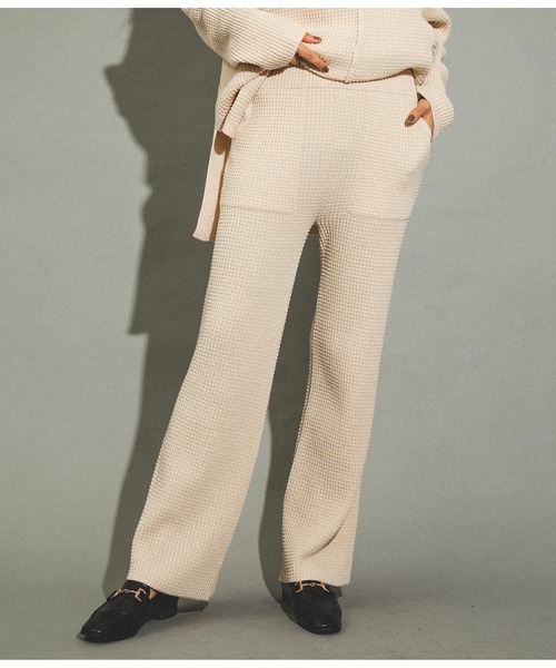 大人気のワッフル編みを使用したニットパンツ。 ワッフル特有の凹凸感が肌に張り付きにくく、快適なはき心地です。 身体のラインを拾わないゆったりとしたシルエットは、大人カジュアルなコーデにぴったり◎ 体型カバーも叶えてくれる優秀アイテムです。 セットアップで楽しめる【ワッフル編みスリットニットトップス】と合わせると一気に雰囲気が出て周りと差をつけられます◎ ※ストレッチあり※裏地なし※ウエストゴムあり ※アイボリーは若干透ける素材になっております。 ※ニット素材のため、伸縮性があり記載しているサイズと若干異なる場合がございます。予めご了承ください。 ※商品のお取扱いに関しましては、商品に付属のアテンションカード、洗濯ネームをご覧ください。 ※モデル着用画像は光の当たり具合で色味が違って見える場合がございます。 ※商品の色味の目安は、商品単体の画像をご参照ください。 【お買いものをお楽しみいただく為に!】 ▼商品のお気に入り登録 完売カラーの再入荷通知や、ラスト1点の通知、セールの通知も受け取ることができます。 ▼ブランドのお気に入り登録 新商品や再入荷など、いち早くブランドのお得な情報を受け取ることができます。