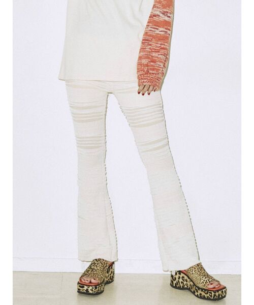 【ポイント】 程よくフィットし、裾に向かって広がるシルエットでスタイルアップ効果期待大のパンツ。ルーズシルエットのトップスやシャツと相性が良く、一本持っておくと活躍してくれること間違いなしのアイテムです。 【ファブリック】 細かいフリルが施された伸縮性のある生地を使用。 【スタイリング】 ルーズシルエットのプルオーバーやビッグT、チュニックブラウスに合わせるとすっきりとしたスタイリングに◎細かいフリルがアクセントになってくれるのでベーシックトップスとの相性も抜群です。【商品特徴】透け感:なし伸縮性:あり生地の厚さ:普通サイズ感:普通裏地:ありポケット:なし ●この製品はデリケートな素材を使用し、縫製しておりますので、引っ掛かりにご注意ください。 ●着用時にベルト、バッグ、アクセサリーや表面の粗いものとの引っ掛かりにより、糸切れが発生することがあります。 ●洗濯やクリーニングの際は、単独、ネット使用などで他のものとの引っ掛かりにご注意下さい。 ※着用画像はフラッシュの加減で実際の製品と色味等が異なる場合がございますので、生地のズームアップ画像をご確認ください。 ※ご利用の端末画面の設定により実際の商品と色味が異なる場合がございます。【jouetie ZOZOTOWN お買い物ガイド】▼商品をお気に入り登録!♡をクリック!完売商品の再入荷やラスト1点の通知、セール開始時にお知らせ!▼"jouetie(ジュエティ)"をお気に入りブランドに登録!新商品や再入荷など、ブランド最新情報をいち早くお知らせ!