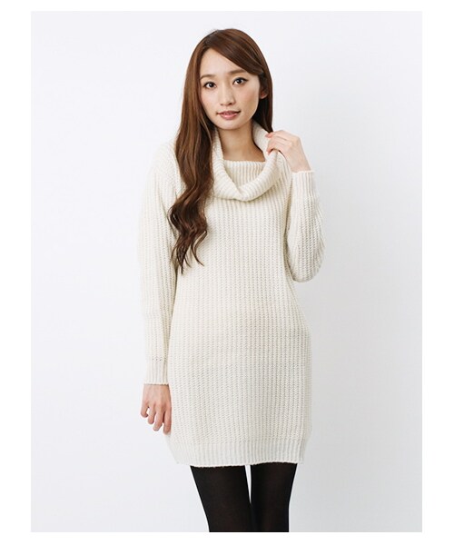 冬の定番オフタートルはゆったりとしたニットワンピースに仕上げました。ふんわりとした見た目で温かみのある一枚。どんなシューズとも相性が良いので色々な着こなしが楽しめます。【モデル身長:約169cm/着用サイズ:Fサイズ】