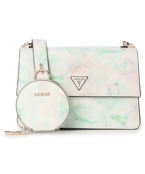 ウォーターフラワー×グロス加工のモノグラムが、モダンフェミニンな雰囲気を漂わせるクロスボディバッグ。クラシックで上品な印象を与えてくれるフラップデザイン。メイン収納に加え、前後にあおりポケットが付いているのも便利なポイントです。アクセントにも映えるミニサイズのポーチ付き。デートやパーティなどのシーンにも活躍してくれるアイテムです。外側ファスナーポケット:1内側オープンポケット:5[ポーチ] 高さ9cm 幅9cm マチ2cm