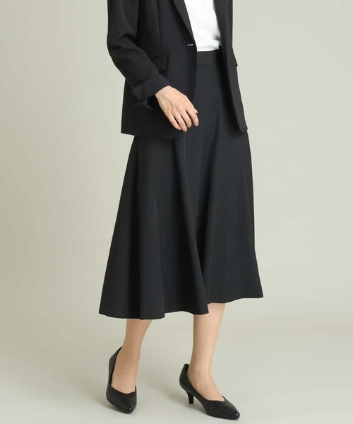 ◆通勤にもOK、入学式・卒業式・七五三・セレモニー◆ 【デザイン】 女性らしい上品さのある丈感のスカートは シンプルなデザインで汎用性が高く ウエストはバックゴムで ストレスフリーな穿き心地。 フレアなシルエットで足さばきも良く 動きやすさも兼ね備えています。 縦のラインを強調する切り替えがポイントで、 腰回りはすっきりとさせ、 裾に向かって広がる上品なシルエットに仕上げました。 セレモニーからオフィススタイルまで重宝する一枚です。 ストレッチの効いた素材で動きやすく しわになりにくいのも嬉しいポイントです。 ウエストに滑り止めテープが付いているので 動いてもブラウスが出てきにくく キレイに着こなせるアイテムです◎ 【素材】 マットな質感の上品見えする素材です。 ストレッチ素材で快適な着ごこち。 ご家庭の洗濯機で洗えて しわになりにくくアイロンいらずでケアも楽ちん。 帯電防止効果のある裏地で 静電気やまとわり防止に◎ 【コーディネート】 同素材アイテムとのセットアップスタイルはもちろん ニットやブラウス合わせでデイリーきれいめスタイルも◎ フォーマルな場やビジネスシーンに活躍してくれるので 一枚あると重宝します。 【同素材シリーズ】 ノーカラージャケット:KBDCS01109 キーネックジャケット:KBDCS02109 テーラードジャケット:KBDCS03109 フレアスカート:KBHCS01069 ベルト付ナロースカート:KBHCS02069 テーパードパンツ:KBLCS01069 ワイドパンツ:KBLCS02069 セットアップでお探しの際は上記品番をご確認ください。 -------------------- ≪お気に入り登録機能の使い方≫ ■商品のお気に入り登録(ハートマークをクリック) 再入荷通知や値下げ等、お得なご案内を受けることができます。 -------------------- ※商品画像は、光の当たり具合やパソコンなどの閲覧環境により 実際の色味と異なって見える場合がございます。 商品の色味の目安は商品単体の画像をご参照ください。 ※34(XSサイズ)・42(XLサイズ)はWEB・一部限定店舗での販売です。