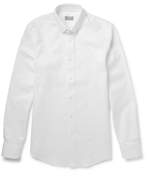 It's easy to see why NYC-based brand Club Monaco is known for refined staples. Nothing is more versatile than a classic white shirt and this one has all the right details. The cotton Oxford piece is cut for a slim yet comfortable fit with a button-down collar and cuffs. Team it with sharp tailoring or selvedge denim. Shown here with a Club Monaco blazer , A.P.C. jeans and J.M. Weston shoes . White cotton Oxford shirt Slim fit, button-down collar, buttoned cuffs, chest pocket 100% cotton Machine wash
