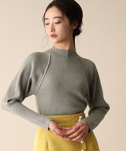 上品なラメ糸を混合した、ラグランスリーブデザインニット。 【素材】 毛とラメ糸を少し混合した、程よい肉感のリブデザインニット。 ラメ糸は細く同色に近いものを選び、上品なキラキラ感がポイント◎ ハンドウォッシャブル機能付き。 ※製品寸法は平置きのスペックとなっております。こちらの商品は伸縮性があります。 ※こちらの商品はやや透け感があるため、インナーの着用をおすすめします。 【デザイン】 冬の華やかなニットスタイルに仕上げてくれる、ラメデザインニット。 あたたかみのあるハイネックリブ仕様に、袖はラグランスリーブでふんわりボリューム袖のこなれたシルエット。 身頃部分はすっきりとさせ、インでもアウトでもきまるデザインに仕上げました。 【カラー】 ベージュにやさしいピンクゴールドラメ糸を混合した605カラー、杢グレーにシルバーラメを混合した606カラー。 こちらの商品は主に冬に着用いただける商品です。 モデル情報:身長163cm B81 W56 H82 着用サイズ:38(M) 店舗へのお問い合わせ商品番号:N02-15020 ●製品寸法: 38(M):着丈50cm B72cm 裄丈73cm 備考: