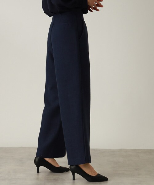 ■Point/Detail素材の華やかさと厚みをいかしたストレートワイドパンツ。腰回りはノータックでスッキリと見せてくれます。高めに設定した股上と、後ろのポケットは脚を長く見せてくれます。※ポケット数:横×2、後ろ(ダミー)×2■Quality落ち着いた色合いでシャープで華やかな印象のミックスツイード。セレモニーのシーンからお仕事やフォーマルなシーンにも対応できそうなきちんとした素材感です。しっかりとした肉感のある素材。※ショート丈の裏地あり■Styling同素材で展開しているジャケット(040-46004) に合わせるとよりフォーマルな印象に。ブラウスを合わせてきれいめスタイルもおすすめです。こちらの商品は主に春に着用いただける商品です。モデル情報:身長168cm B76 W58 H86 着用サイズ:12(M)店舗へのお問い合わせ商品番号:040-66003●製品寸法:12(M):W69cm H101cm 股下66cm 前股上30cm 渡り幅35cm 裾幅26cm13(L):W72cm H104cm 股下69cm 前股上31cm 渡り幅37cm 裾幅27cm14(XL):W75cm H107cm 股下69cm 前股上31cm 渡り幅38cm 裾幅27cm備考: