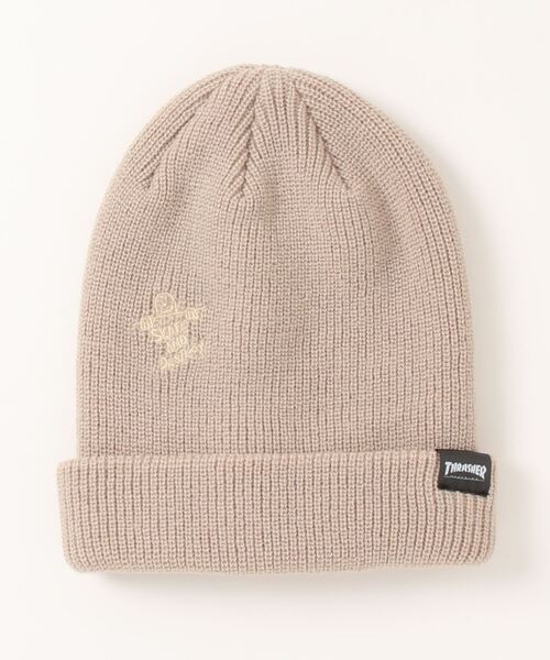 3WAY ACRYLIC KIDS BEANIE/THRASHER スラッシャー キッズ ビーニー ニット帽 ベージュ 刺繍 ストリート スケート