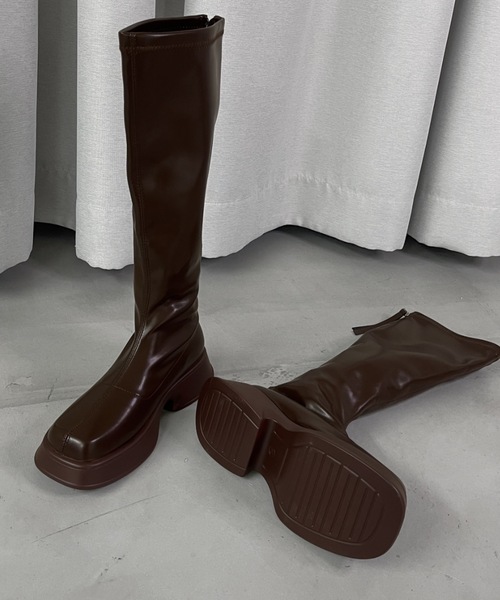 ヘヴィソールのロングブーツながらも軽量で歩きやすい一足POINT・膝下まですっぽりの長めロングブーツながら軽量で負担なく着用可◎・モードな要素たっぷりのヘヴィソールブーツ・簡単に履けるお手軽さがありつつも上品さ、大人っぽさも兼ね備えています・ソールが5㎝あり安定感のある厚底が低身長さんにもおすすめ◎COORDINATE・ショートパンツやミニスカートに合わせた強めなスタイリングからタイトスカートやフレアスカートなどを合わせてスリットからチラッと見せていいただくキレイめ女性らしいスタイリングもおすすめ・デニムをインした大人カジュアルスタイルも素敵に合わせていただけます※こちらは仕入れアイテムになっております。※画像の商品は光の照射や角度により、実物と色味が異なる場合がございます。※製品によっては染料の特性上、湿った状態や汗をかいた状態での長時間の放置、または摩擦により、他のものへ色移りする恐れがありますので、着用時にはご注意下さい。 ※また製品加工上、お手元に届く際に匂いが生じる場合がありますが、 ご使用を続けていく事により匂いは軽減されます。■商品のお気に入り登録お気に入りアイテムの値下げ・再入荷・在庫1点などの通知を受け取ることができます。■ブランドのお気に入り新商品や再入荷など、ブランドの情報をいち早くお知らせします!ぜひご登録ください◎---------------------------------------------------------------Solace/ソレイス“MODE”媚びない自分らしいシルエット“CASUAL”シーンレスで手に取りやすいプライス“ART”どこかエッジのある遊び心トレンドにとらわれず “自分” とマッチするスタイルを提案※ご注文いただいた予約商品のお届け時期の確認は、注文履歴ページより行えます。