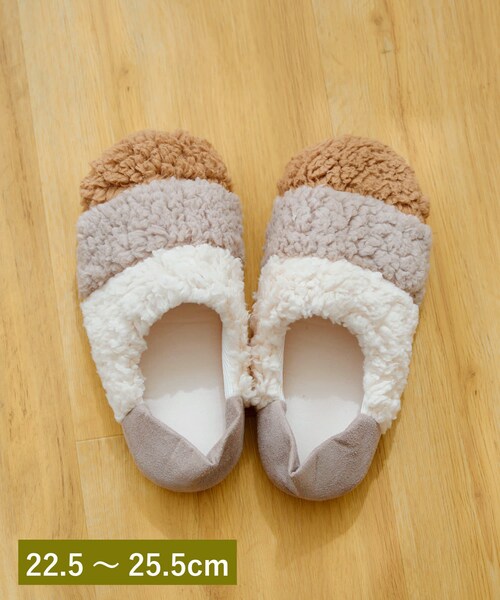 ●淡いくすみカラーのボーダーが可愛い室内用スリッパです。●もこもことしたボア素材であたたかみがあります。●かかと部分はスエード生地になっています◎【fashion】[room]【interior】[fabric]【warm_home】[w_socks]